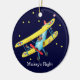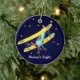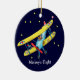 Ornamento cerâmico com a ilustração de um biplano dos desenhos animados. O piloto do miúdo toma um vôo junto com o cão e o gato. Pnha seu próprio texto sobre o ornamento e escolha sua própria cor do fundo! Grande ornamento a pendurar na sala de um miúdo.