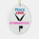 Se você ama a ginástica, você escavará nosso ornamento da ginástica do amor da paz! Refrigere gymnast estilizado frente e verso das características de design com texto no rosa azul, vermelho e brilhante! Fita de suspensão incluída. O presente perfeito da lembrança para os amigos que amam a ginástica!