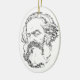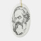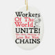 Um Enfeites de natal com o rosto de Karl Marx de um lado e a famosa citação "Trabalhadores do mundo unem-se; não têm nada a perder senão as vossas correntes".