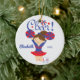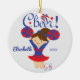 Ornamento triguenho bonito do cheerleader do elogio azul & vermelho. Fácil personalizar com seus nome & data. Visite nossa loja para ver este ornamento em uma grande variedade de cores da escola & de cores do cabelo