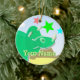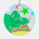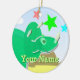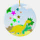 Ornamento verde do nome do dinossauro dos desenhos animados do Triceratops. Um dinossauro verde pequeno bonito do Triceratops dos desenhos animados e um Diplodocus amarelo adorável em uma paisagem pré-histórica com árvores, montanhas e vulcanos com cor stars o ornamento com customizável seu nome. Este artigo do presente dos dinos é inteiramente customizável, adiciona seus textos e imagens! Um ornamento dos dinossauros dos desenhos animados do excelente para o fã pequeno grande de Dino!