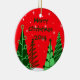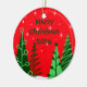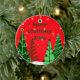 Decore sua árvore de Natal com estes ornamento personalizados do feriado ou dê-os a seus amigos e família como presentes de época natalícia feitos sob encomenda. Estes enfeites de natal customizáveis caracterizam o texto verde em um fundo vermelho com estrelas e árvores. O texto do defeito diz, o "Feliz Natal 2014", mas você pode adicionar, remover ou personalizar o texto e a data na página da ordem do produto. Nós igualmente oferecemos cartões de cartões de natal de coordenação, selos e muitos outros presentes e acessórios feitos sob encomenda do Natal em nossa coleção fantástica do Natal das árvores.