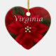 Um gráfico de uma Poinsettia vermelha num ornamento cardíaco de Virginia. O ornamento tem modelos para o seu texto.Nota: O efeito 3D é a imagem - o ornamento é plano. ©2013charmanepaulson.