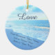 Ornamento Wedding personalizados praia com seu texto na parte dianteira e na parte traseira. Enfeites de natal do amor do azul de turquesa ou ornamento bonitos do casamento do amor. Desenhista Linda da CHAMADA: 239-94-9090 para criar muito mais encalham presentes de casamento temáticos, ideias da recepção da praia, favores e presentes de casamento para convidados.