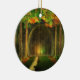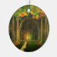 Uma sala de excelentes cortou ao lado da colina, e ao longo de cada parede um corredor de árvores. No extremo extremo, uma baía rasa, com um telhado arquejado, e um pequeno riacho reentrando pela parede como uma fina cortina na frente dela. Na baía, uma mesa e dois vasos, que brilham com um ouro e uma luz verde. A mistura das duas luzes é como o sol de verão brilhando através de árvores jovens. As árvores também brilham, cada folha revestida de luz, verde e ouro e vermelha.