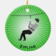 Ornamento Personalizado Zipline. Ziplinando contra um fundo verde de estouro. Todo texto personalizável, frente e verso!