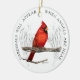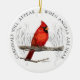 Este ornamento memorável do costume caracteriza minha pintura colorida do lápis de um cardeal solitário. A frase "cardeais aparecerá de quando os anjos estão perto" têm o significado especial para muitas pessoas. Alguns acreditam que a presença de um cardeal é a incorporação espiritual de uma amada que passe afastado. Personalize as áreas de texto na parte traseira para fazer um memorial significativo em honra de um special amou um.