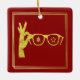 Este é um presente divertido para o oftalmologista. A frente apresenta uma silhueta ouro de uma mão segurando um par de óculos. Lente dentro é uma árvore de Natal. Dentro a outra lente é uma estrela. Se você quiser isso com uma cor de fundo diferente, você pode alterá-lo. Você pode alterar e personalizar este texto no verso como desejar. Devido ao estilo, você só pode comprar este design nos ornamentos SQUARE. Faz um presente de excelente para aniversário, Dia de os pais, Dia de as mães, Natal ou Dia Mundial da Optometria, anualmente no dia 23 de março. Desenhado por Sheila Cicchi, Brownielocks.com. Todos os Direitos Reservados.