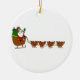 Um desenho de Papai Noel em seu trenó com um grupo de galinhas que puxam seu trenó.