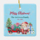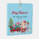 Enfeites de natal personalizado: Watercolor Fantasy Winter Wonderland com Papai Noel e uma tipografia do "Feliz Natal!" na escrita Traga um toque de magia e maravilha para sua decoração de feriado com este Enfeites de natal personalizado apresentando uma cena maravilhosa da maravilha da cor d'água do inverno, completada com uma tipografia do "Feliz Natal!" O Pai Natal é visto segurando uma bebida de Natal deliciosa e cercado por presentes num vagão, enquanto uma bela pinheiro de Natal fica orgulhosamente distante, decorada com ornamentos e luzes coloridos. O céu é uma brilhante sombra de azul, com uma queda de neve suave descendo. Esse ornamento exclusivo pode ser personalizado com seu nome ou nomes de família, assim como o ano estabelecido ou a data, fazer-o como uma manutenção estimada para os próximos anos. Feita de cerâmica de alta qualidade, esse ornamento deve durar muitas férias por vir. É também o tamanho perfeito para pendurar em qualquer árvore de Natal, grande ou pequena. Peça seu Enfeites de natal personalizado hoje e crie uma memória de feriado que durará uma vida inteira!
