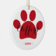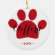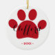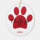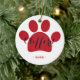 Ideia bonito do presente para amantes do animal de estimação! Enfeites de natal vermelhos da pata personalizados com nome de pia batismal da tipografia do roteiro.
