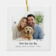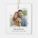 Um adorno de cerâmica quadrado para pais de estimação orgulhosos. A janela de fotos de pincel enquadra seu instantâneo favorito, com a legenda animada "Paw-La-La" abaixo e espaço para nomes e anos. O estilo preto-em-branco limpo lisonja qualquer árvore e faz um presente divertido para amantes de cães, novos adotivos ou famílias que incluem seu bebê de pele em cada feriado.