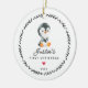 Simplesmente perfeito, o primeiro enfeite de Natal do Bebê, com um pinguim doce com coroa estendida pela mão moderna e um pequeno coração.