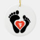 Este é um enfeite divertido que pode ser usado como design num escritório de punição (ou em casa). Ou, como presente de Natal e pendurado anualmente na árvore de Natal do escritório ou na árvore do médico em casa. O design da frente apresenta o símbolo médico para a dentro do coração. O texto de retorno pode ser alterado para um Nome ou algo diferente se você não quiser a observação sobre isso. Devido ao design, você só pode comprar isso em ornamentos ROUND. Desenhado por Sheila Cicchi, Brownielocks.com. Todos os Direitos Reservados. NOTA: Dia da Podiatria é 8 de outubro. Amo meu Dia dos Pés é 17 de agosto.