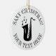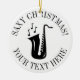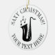 Presente feito sob encomenda do ornamento da árvore de Natal do saxaphone. Adicione sua própria imagem da foto na parte traseira opcionalmente. O instrumento do saxofone com notas projeta e modelo à moda da tipografia para o nome e a data. Lembrança personalizada bonita por primeiros feriados do Natal. Personalize a cor do fundo. Corda Dourado do brilho incluída. Decorações feitas sob encomenda do xmas para o saxofonista, o jogador de saxofone, o músico, o professor de música, a banda, o amigo, o marido, o pai etc. boas festas!