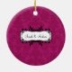 Nossos primeiros enfeites de natal da foto caracterizam um fundo cor-de-rosa bonito do damasco! Personalize com sua informação e data e você são todos ajustam-se para ir! Presente datado maravilhoso da lembrança para seu primeiro Natal e uma grande adição a você coleção dos enfeites de natal.