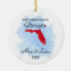 Um Ornamento Personalizado do Estado da Flórida usado para celebrar o primeiro Natal a viver juntos como casal, família ou recém-casados nos Estados Unidos da América. Celebre sua primeira temporada de festas no estado da Flórida com nosso ornamento belamente trabalhado dos "Estados Americanos". Essa manutenção personalizada é a adição perfeita à sua árvore de Natal, servindo como um lembrete eterno do seu primeiro Natal juntos — um momento que você vai apreciar por anos. Design personalizado: Adicione seus nomes e data para criar uma manutenção única que é exclusiva de vocês. Presente perfeito: uma escolha cuidadosa e apreciada para recém-casados e novos donos de casa. Uso versátil: mais do que apenas um ornamento em árvore! Mostre esta bela manutenção no seu ano de casa como um lembrete duradouro do seu ano especial. Nosso ornamento "Estados Americanos" é mais do que apenas uma decoração — é uma emocionante mania, simbolizando o início de sua jornada juntos. Cada ornamento é meticulosamente trabalhado para capturar a alegria e o amor de sua primeira temporada de festas em sua nova casa encontrada.