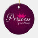 Este produto é perfeito para a festa de aniversário de uma criança, o chá de fraldas, o presente, etc. Caracteriza um fundo roxo na moda do redemoinho com a palavra "princesa" em uma pia batismal baseado num guião branca. Uma tiara cor-de-rosa senta-se acima das palavras. Personalize o artigo para incluir seu nome, ou suprima do texto.