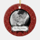 Nossos primeiros enfeites de natal da foto caracterizam um redbackground bonito & elegante do redemoinho! Personalize com sua informação e data e você são todos ajustam-se para ir! Presente datado maravilhoso da lembrança para seu primeiro Natal e uma grande adição a você coleção dos enfeites de natal.