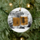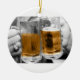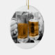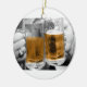 Fotografia de duas canecas de cerveja se segurando umas contra as outras. Cerveja na caneca colorida; a foto restante é preto e branco. Mostrado em ornamento redondo; outros estilos disponíveis. Cor de fundo da sua escolha. Personalizável.