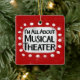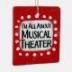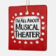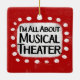 "Sou All About Musical Theater" é um design de texto fofo em vermelho com texto preto, junto com uma forma de sotaque branca e pontos brancos texturizados ao seu redor.