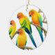 Design original das belas artes de papagaios coloridos de Sun Conure pelo ilustrador/desenhista Carolyn McFann do estúdio de ronrom de dois gatos em um ornamento do feriado da qualidade para amantes do pássaro.