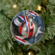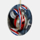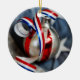 Uns únicos enfeites de natal com uma fita branca & azul vermelha ondulada e um fundo velho da bandeira. Aperfeiçoe para um Natal patriótico e totalmente customizável para que você personalize como você por favor!