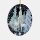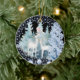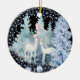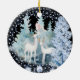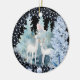 Adorável ornamento cerâmico com ilustração de dois cervídeos brancos com ouros na floresta de inverno com flocos de neve, colocados sobre fundo negro. A cor de fundo pode ser alterada.
