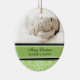 O Feliz Natal avó e vovô ornament customizável com sua própria foto de família no verde elegante, cor damasco floral clássica preto e branco. Um presente à moda do Natal para o vovô e a avó esta época natalícia.