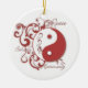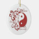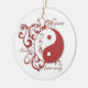 Um design de roda dos rolos e do yinyang enfeita este ornamento bonito do feriado com a paz, o equilíbrio, e a harmonia das palavras. Isto faz um presente excelente para aqueles que querem comemorar o espírito do feriado mas não pode ser cristão.