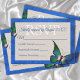 Placa de gabinete rsvp azul e verde com design de borboleta. O trabalho de arte azul corresponde ao convite da borboleta e às etiquetas de endereço de retorno. Perfeito para quinceañeras e outras celebrações de aniversário com cores azuis ou azuis reais ou marinhos.