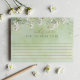 Crie um presente significativo com este cartão de conselhos para a noiva com flor silvestre verde. Projetado com flores de água-marinha em tons suaves e delicadas flores brancas, este cartão romântico inspirado em jardins convida os convidados a compartilhar palavras sinceras, desejos e conselhos de casamento para a futura noiva.