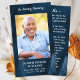 Simpatia de Mármore Azul Premium Cartões de Oração Funerários. Este simples cartão de oração memorial apresenta um elegante design de pedra de lapis azul. Frente "In Loving Memory" Personalize este cartão de oração do funeral memorial com a foto, o nome e as datas de seus entes queridos e o sentimento. Poema 'Miss Me', que pode ser personalizado, por favor, contacte se quiser uma design com um poema específico que não. Este cartão de oração memorial laminado será um guardião tesouro, para serviços funerários e celebração da vida. COPYRIGHT © 2020 Judy Burrows, Black Dog Art - Todos Os Direitos Reservados. Cartão de Oração de Foto Azul de Mármore Funeral