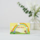 Gráficos doces de um arco-íris, de flores, e de um cão de filhote de cachorro, em um fundo amarelo e verde. O texto coloca toda pronto para personalizar para sua criança, adiciona mais campos do texto na parte dianteira ou na parte traseira deste cartão telefónico adorável.
