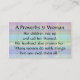 Um cartão de contato da mãe do Proverbs 31, excelente para compartilhar com outras mães da escola, da igreja, do trabalho ou de grupos de brincadeira. Os filhos dela se levantam e a chamam de abençoada. Seu marido também a elogia: "Muitas mulheres fazem coisas nobres, mas você as excita a todas."