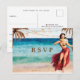 De Convite cartão postal do casamento rsvp da praia tropical