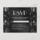 Cartão postal RSVP com um elegante preto e branco, design de rendas e satins. Design muito clássico e sofisticado para qualquer evento. Toda impressão de fotos.
