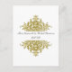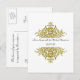 Este cartão postal é perfeito para enviar aos seus amigos e familiares para a RSVP deles. Apresenta um fundo branco na frente com um belo design barroco de ouro. A parte traseira está reservada para suas informações de RSVP. Todo texto é personalizável.