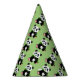 O chapéu do partido é mostrado em uma cor de verde limão com um impressão bonito da panda.