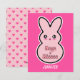 Coelho kawaii rosa com texto abraços e beijos e corações pequenos. Envie abraços e beijos para seu amor com este cartão do dia dos namorados do coelho kawaii.
