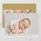 Um elegante cartão de nascimento de feriado com fotos que apresenta suas 4 fotos favoritas especiais, o nome do bebê e as estatísticas de natalidade, e sua mensagem de feriado em tipografia moderna clássica sobre uma mensagem chic script de alegria. Projetado por Thisnotme©