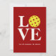 Trendy elegante cartão com fotos plano de pickleball com letras empilhadas soletrando "LOVE" com uma bola de picleball no lugar do O em um fundo de cor rica. Foto de borda a borda grande. Mensagem pessoal - o marcador de posição pode ser personalizado para o destinatário do grupo ou substituído pelo seu próprio sentimento. Disponível em uma seleção curada de cores energéticas. Também disponível em versões de cartão dobradas e sem foto - verifique a loja. Perfeito para Dia de os namorados, Dia Mais Doce, aniversário de casamento ou qualquer dia!