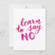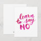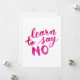 Aprenda a não dizer nenhuma citação inspiradora. Citação inspiracional rosa escrita à mão sobre cartões