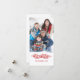 Aqueça o cartão com fotos do feriado dos desejos | - vermelho. Elke Clarke© outro colore disponível em nossa loja em www.zazzle.com/epclarke. Os flocos de neve e os redemoinhos e o efeito falsificado da neve fazem a isto um cartão versátil e fácil de usar do modelo para adicionar seu nome da foto e de família. Design simples, bonito para criar seu próprio original de um cartão de cartões de natal amável para enviar à família e aos amigos.