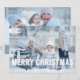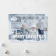 Um design moderno de tipografia ousada na parte inferior do cartão que deseja a família e amigos um grande "Feliz Natal" em um inverno ligeiramente transparente, denim banda azul na parte inferior do cartão horizontal para mostrar o texto branco. Apresenta duas fotos bonitas em tamanho de cheio de sua família feliz, tanto na frente quanto no verso, com espaço adicional no verso para você adicionar sua mensagem de feriado pessoal e nomes individuais. Uma bela carta contemporânea para qualquer cartões de natal.