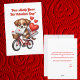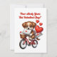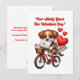 Uma cena encantadora com um cachorrinho fofinho e marrom-dourado andando de bicicleta estilo vintage com uma pequena cesta de vime presa na frente. Acima, em letras divertidas e caprichosas, o texto diz: “Paw-sitivamente Seu neste Dia dos Namorados!” Perfeito para quem adora cães e uma boa dose de fofura! 🐶❤️