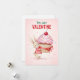 Um coelhinho adorável em uma camisa listrada vermelha envolve suas patas em torno de um cupcake gigante com cobertura rosa, confeitos e uma cereja. Perfeito para visuais de aniversário, festa ou primavera.