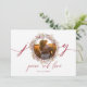 Elegante, cartão com fotos cartões de natal. Mão que escreveu alegria, amor e paz com uma coroa de frutas design em ouro de cobre, vermelho e verde. Folhagem, bagas, tema da floresta com elegância de uma letra de escrita de tendências e de uma mensagem de cartões de natal de eterno. Adicione seu nome e foto na frente e seu monograma inicial na parte de trás para um clássico de design para enviar seus Cartões de natal para a família e amigos.
