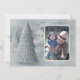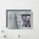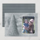 Foto da árvore de Natal em miniatura de papel feita à mão, com o NOEL impresso sobre ele, colocado contra um pano de fundo de neve. Esta versão é um legal azul. Basta carregar sua própria foto de família e mudar a saudação personalizada no final.