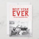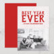 Cartão com fotos de Feriado do Ano Novo, no Melhor Ano, com um fundo estelar divertido em vermelho e branco. Adicione uma foto e uma saudação personalizada para personalizar. Fotografia © Storytree Studios, Stanford, CA